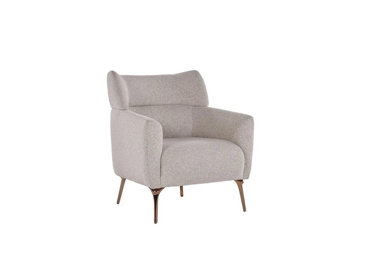 The Vanessa Armchair is a masterpiece of comfort and contemporary design. Its sculpted form, with generous cushioning, is perfectly contoured to support and embrace the body. Upholstered in a soft, neutral fabric, it exudes a sense of calm and elegance. The chair rests on slender, tapered legs, which give it a light, airy feel, making it an excellent addition to any modern living space or reading nook. It’s not just a chair; it’s a haven for relaxation and a modern touch of sophistication.